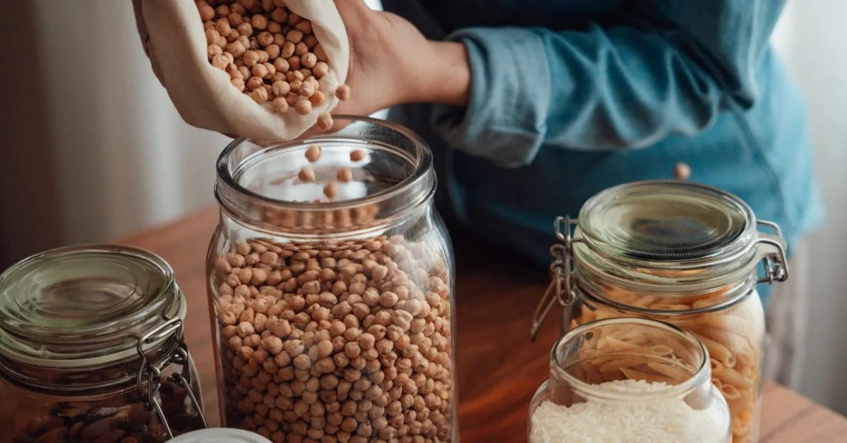 Photo credits: Cobb salad by Viktoriya Skorikova; supermarket beef aisle by Grace Cary and pulses in jar by Oscar Wong
